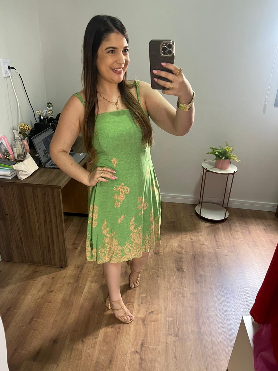 Cor: Verde menta com estampa em nude.